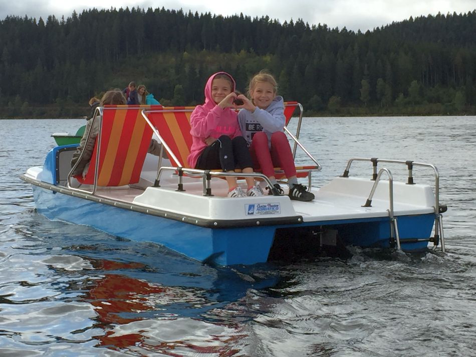Nach einem leckeren Frühstück am ersten Morgen gingen wir Tretboot fahren auf dem Schluchsee – unser erstes Highlight. Gerne hätten wir mehr Zeit auf dem schönen See verbracht, aber es stand noch eine Wanderung an und so machten wir uns gemeinsam auf den Weg zu einem Aussichtsturm. Es hatte sich gelohnt die vielen Treppenstufen hoch zu steigen, denn die Aussicht war atemberaubend.