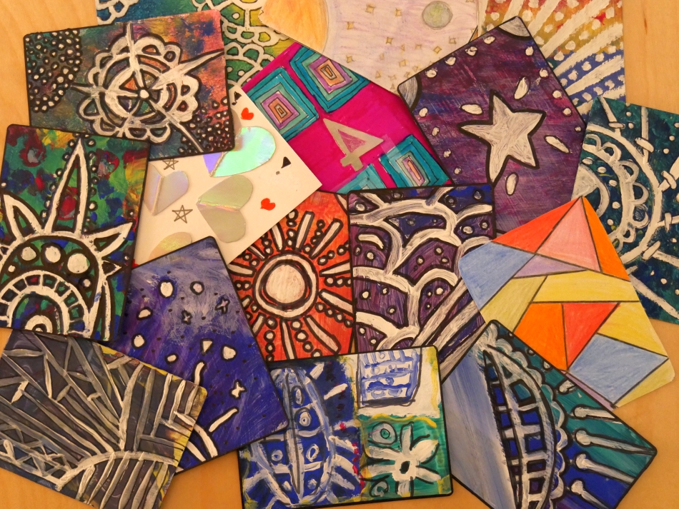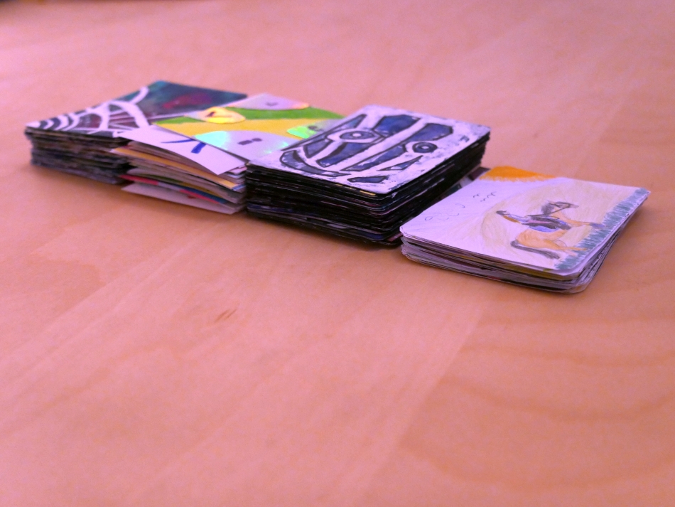 Bei ATCs handelt es sich um ein kleines Kunstwerk, ein Tauschobjekt, eine Sammelkarte, die individuell künstlerisch gestaltet und dann mit anderen Klassen und Schulen getauscht werden kann. Gestaltet werden die ATCs im Kunstunterricht. Farben, Mixed-Media, Aquarell, geklebte Papiercollagen, Stempel, es wurde fast jede Technik in Verbindung mit Papier angewandt. Dabei gilt es nur zwei Regeln zu beachten: Die Größe darf 8,9 cm x 6,3 cm nicht überschreiten und die Karten dürfen niemals verkauft, sondern nur getauscht werden.