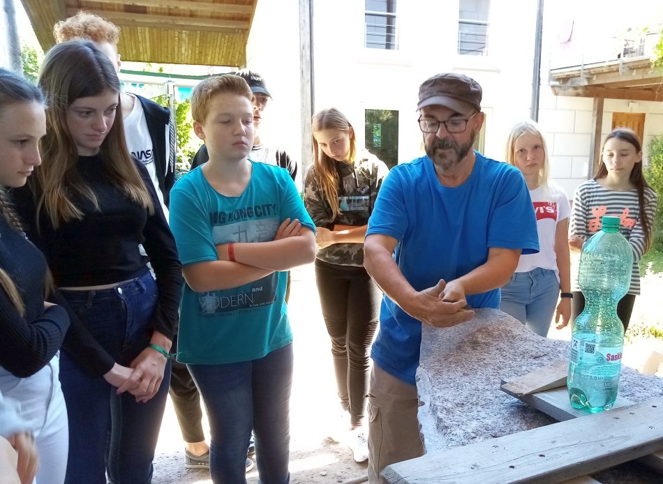 Dabei wurde deutlich, dass jeder Künstler auf seine eigene, individuelle Weise an einer Skulptur arbeitet: So werden an einer Stelle riesige Steine in verschiedenster Weise bearbeitet, mal mit Hilfe großer Maschinen, mal mit präzisen Hammerschlägen. Hier kann es laut und staubig werden, die künstlerische Arbeit ist hier auch eine große körperliche Herausforderung. In der Garage wird Porzellanmasse zu riesigen Tellern geformt, die später gestapelt werden. An anderer Stelle werden Holzleisten zu großen Objekten verschraubt und ein weiterer Künstler graviert Worte in Sandsteine aus Ettenheim, die später zu einem Kunstwerk zusammengestellt werden – in jedem Winkel des Geländes entsteht etwas, gibt es etwas zu sehen und zu bestaunen.