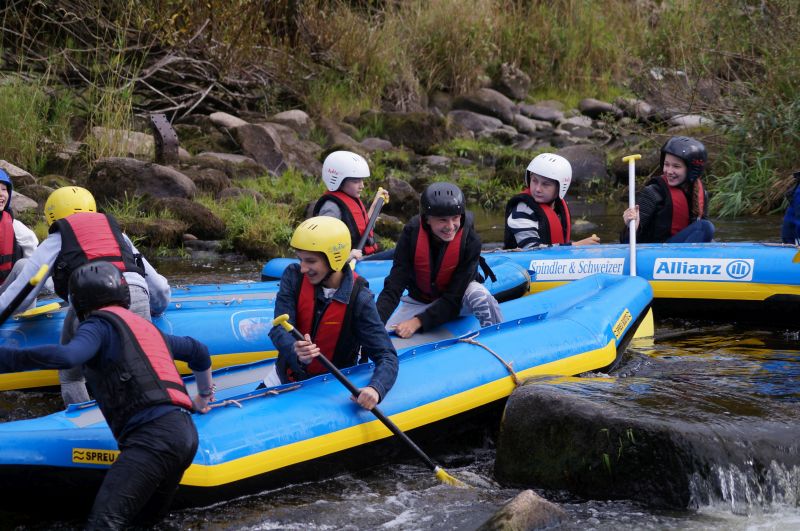 der Murg angesagt mit Abseilen von einer Brücke und anschließendem Rafting. Bei bestem Herbstwetter hatten alle viel Spaß, vor allem beim Rafting. Auch das kalte Wasser konnte die meisten nicht abschrecken ein Bad zu nehmen. Mit einem Bayrischen Abend ließen wir den anstrengenden – aber tollen – Tag ausklingen.