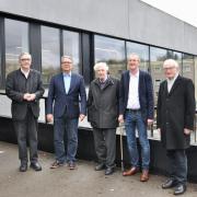 Der Vorsitzende des Lehrbrüdervereins Wolfgang Mutter übergab Eberhard Pfister und dem Konrektor der Realschule Thomas Dees als Vertretern der Schule die Tafel und brachte dabei seine Freude zum Ausdruck, dass die Wurzeln der Schule nun einen sichtbaren Ort haben.