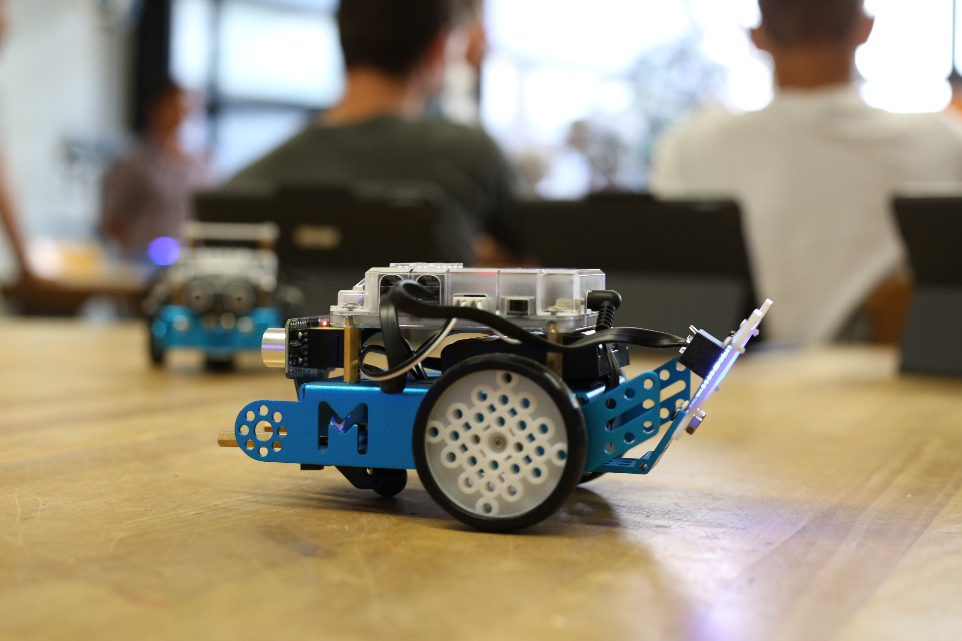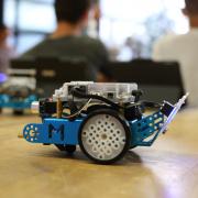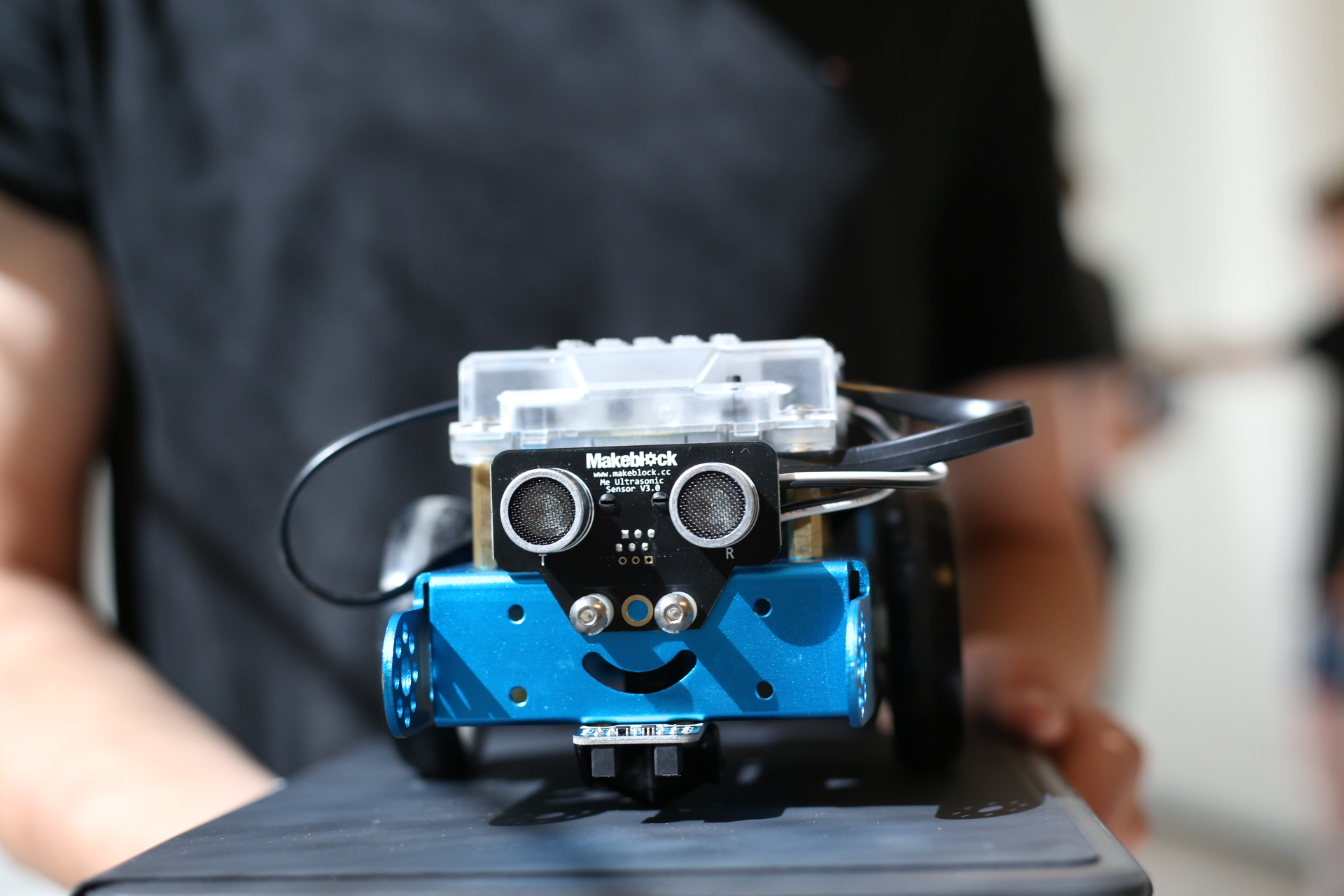 Lehrer Dominique Stolz erstellte in den 3-D-Druckern eine dreidimensionale Darstellung des Schullogos und zeigte die Anforderungen an die Nutzer hinsichtlich des hohen Zeitaufwands und der technischen Überwachung des Ausdrucks. Reinhard Kastner umriss die vielfältigen Möglichkeiten der elektronischen Steckbretter beispielsweise beim Messen des Stromverbrauchs oder in Verbindung mit USB-Ports. Hand anlegen durfte Volksbank-Vorstand Richter dann beim Steuern der fahrbaren Roboter, für die die Schülerinnen und Schüler im Schulflur einen Parcours programmiert und aufgebaut hatten.