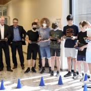 Stolz und freudig präsentierten Schülerinnen und Schüler sowie Lehrer der MINT-Fächer am Gymnasiums der Heimschule St. Landolin, welche Möglichkeiten ihnen im Unterricht nunmehr geboten sind. Das Bildungsförderungsprojekt „VR-Digication“ der Genossenschaftsbanken ermöglichte ihnen die Anschaffung zweier 3-D-Drucker, zehn programmierbarer Roboter sowie von zehn elektronischen Steckbrettern. Für die Förderung der Anschaffungen in Höhe von 7.500 Euro bedankten sich Schulleiter Eberhard Pfister, die Lehrkräfte Dominique Stolz (NWT), Reinhard Kastner (Physik) und Benedict Konrad (IMP) bei einer Dreier-Delegation der Volksbank Lahr, bestehend aus Vorstand Reiner Richter, Marketing-Leiter Dieter Leidinger und Susanne Hauser (Kommunikation).