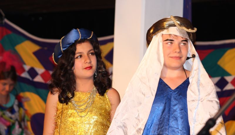 Farbenprächtig gekleidete Bauchtänzerinnen, orientalische Musik und ein Kamel versetzten die Zuschauer in die Gemächer eines arabischen Scheichs. Ein Sternenhimmel konnte plötzlich tanzen, Marmorstatuen erwachten zum Leben und ein Drache bot seine Künste als Feuerspucker an. Die Musical-Melodien reichten von einfühlsamen leisen Weisen bis hin zu fetzigen Raps. Immer wieder waren kleine, witzige Gags eingebaut, die das Publikum zum Schmunzeln brachten: So spielt etwa Don Antello, der Berater des Königs, zwar äußerst gekonnt einen Italiener, kommt aber, wie alle wissen, aus Bombach.