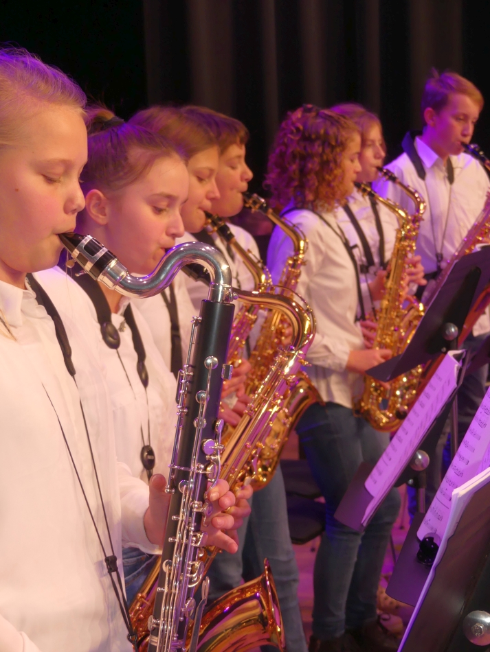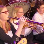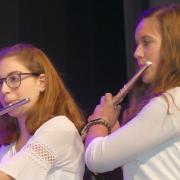 Große Konzertmusik boten Musiklehrer Markus Albu mit seinen vereinigten Bläserklassen R9 und R10. Das anspruchsvolle Stück „Dakota“ nimmt in fünf Sätzen viele Elemente der indianischen Kultur auf. Die konzertante Herausforderung meisterten die Schüler auch deshalb hervorragend, weil die intensive Probenarbeit mit der australischen Gastdozentin den Schülern neue Impulse gab und nichtalltägliche Proben mit einer ausländischen Dirigentin besonderen Spaß bereitete. Die beiden Ansagerinnen benannte das sehr rhythmische und aus der Jazzmusik stammende „Jamming with Charlie“ als ihr Lieblingsstück, was auch an der Spielfreude der Saxophonsolisten Magdalena Eichhorn, Max Trotter und Greta Leser anzusehen war.