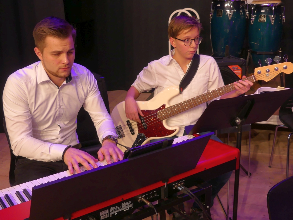 Das Dessert des Abends servierte die Klasse R10b mit „My Dinner für Ronald“, einem Stück aus der Musikrichtung des Swing. Die Klasse und Herr Albu ernteten großen Applaus für das Musikstück. Hervorzuheben sind der Solotrompeter Jonas Joseph, Pianist Steven Miscenko und der E-Bassist Paul Broßmer. Der Applaus der Mitschüler zeigte die Bewunderung für die Leistungen auf der Bühne und dass gemeinsames Musizieren nicht nur die musikalischen, sondern auch die das soziale Verhalten der Schüler untereinander fördert. Den Dank und die Anerkennung für alle Beteiligten brachte Schulleiterin Heckner am Ende des Winterkonzerts zum Ausdruck. Die Besucher genossen den einstündigen Konzertabend und hätten sich noch gerne mit einigen weiteren Musikstücken in die Weihnachtszeit einstimmen lassen.