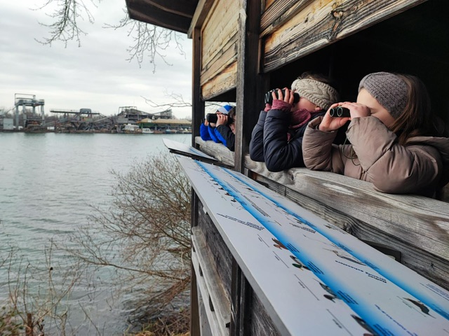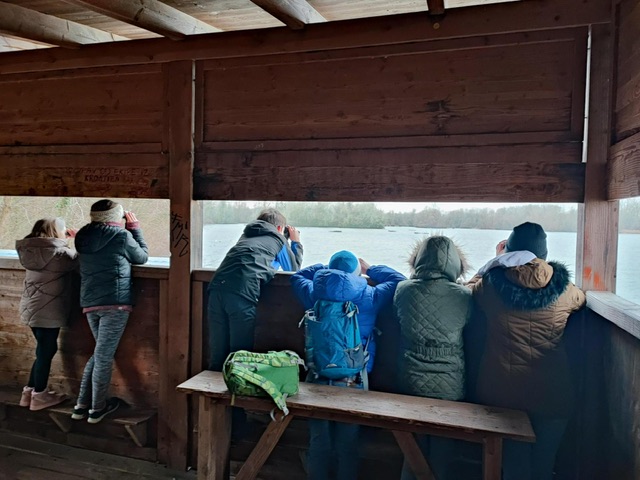 Bei einem strammen, eisigen Wind brach die Naturschutz-AG unter der Leitung von Herrn Stolz zur Winterexkursion in das Naturschutzgebiet Taubergießen auf. Die kleine Wanderung begann an der Fähre in Kappel. Von hier aus ging es über den Damm zur Beobachtungsplattform. Mit Ferngläsern ausgestattet konnten viele unterschiedliche Wasservögel beobachtet werden, darunter Kormorane, Reiherenten, Nilgänse und natürlich Höckerschwäne.