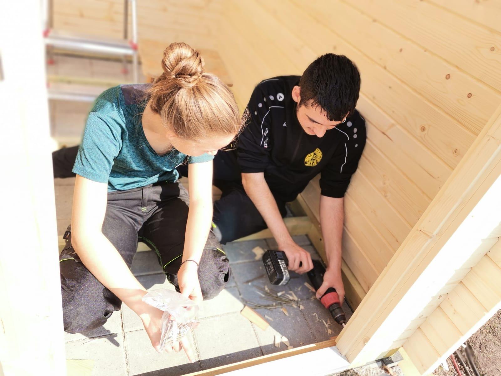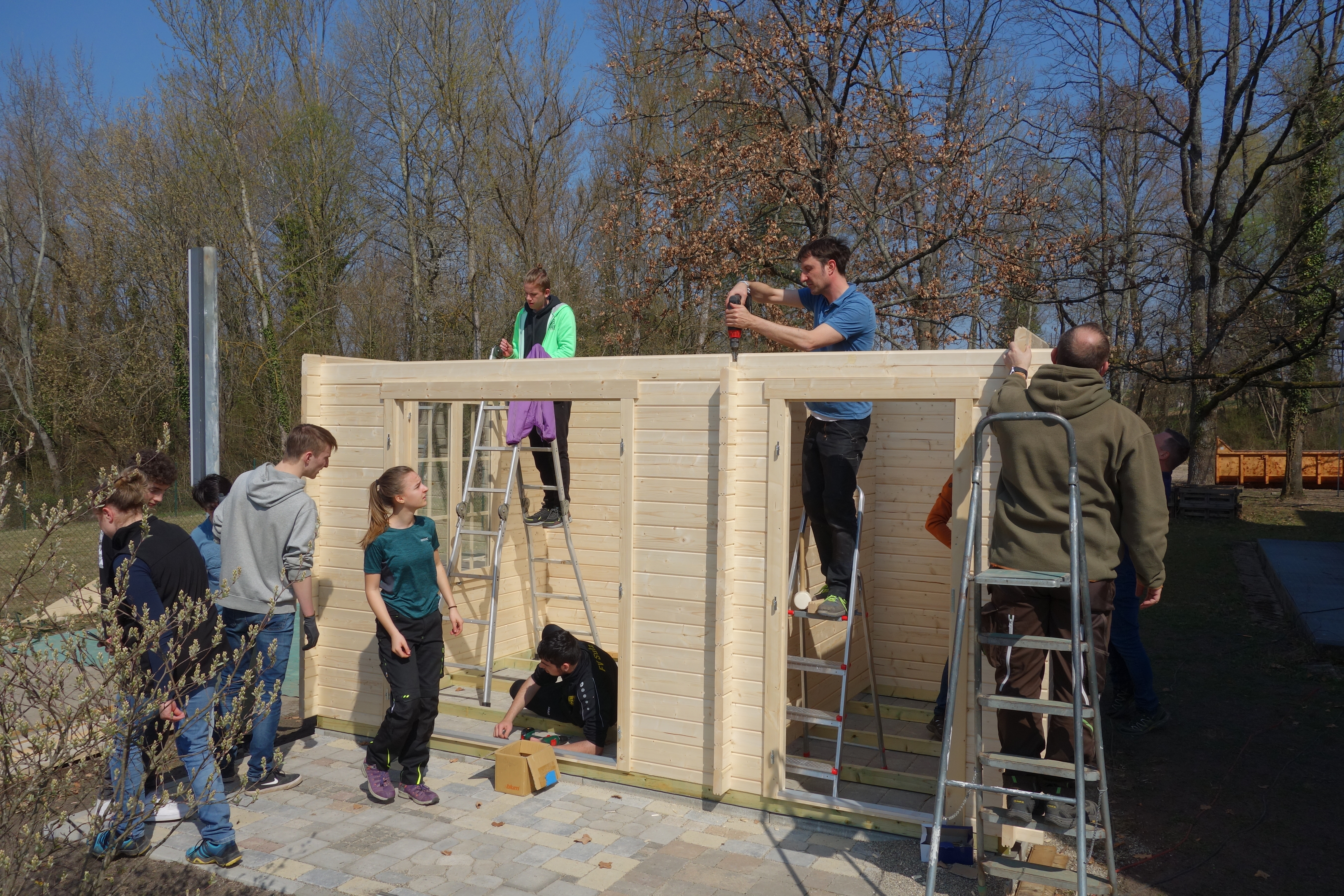 microsoftteams-image_1.jpgDas Fundament dafür wurde von einer externen Firma gelegt. Bei schönstem Frühlingswetter bauten die Schülerinnen und Schüler der AG mit der großartigen Unterstützung von Eltern einen ganzen Tag von morgens um 9 Uhr bis zum späten Nachmittag. Sogar zwei ehemalige Schüler kamen extra, um noch einmal am Schulgarten mitzuwerkeln. Das Ergebnis: Ein kleines Haus mit zwei Räumen für Gartengeräte und für die Anzucht und Überwinterung von Pflanzen – und die ersten leichten Sonnenbrände des Jahres.