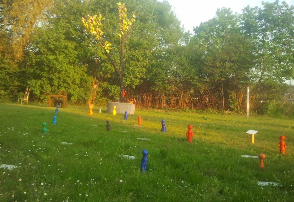 Das Besondere der diesjährigen Schulkunstausstellung ist, dass sie sich im Freien und im öffentlichen Raum präsentiert – und zwar auf der Landesgartenschau in Lahr. Die Drehtür am „Ausgang Römerstraße“ der Landesgartenschau führt die Besucher direkt an der Wiese der Schulkunst vorbei.
