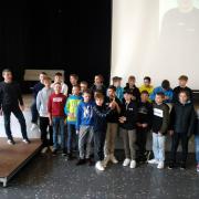 Die große Siegerehrung mit der Übergabe der Siegerpokale fand dann im März in der Aula statt. Als Überraschung schickte Matthias Ginter vom SC Freiburg Grußworte per Video und gratulierte allen Mannschaften zu ihrem Erfolg. Der Freundes- und Förderverein der Heimschule lädt die drei Siegerteams zu einen Spiel des SC Freiburg II im schönen Dreisamstadion ein. Herzlichen Dank dafür!