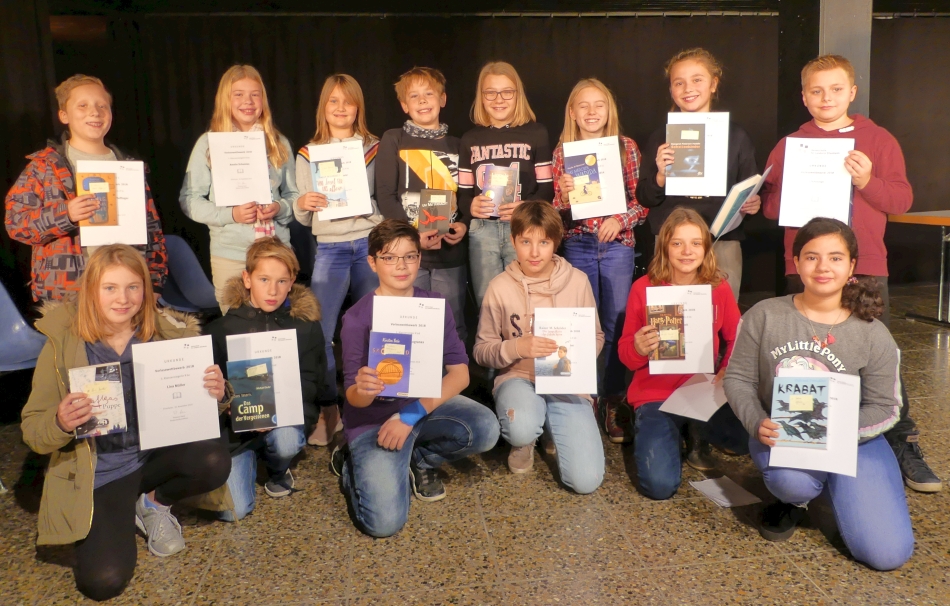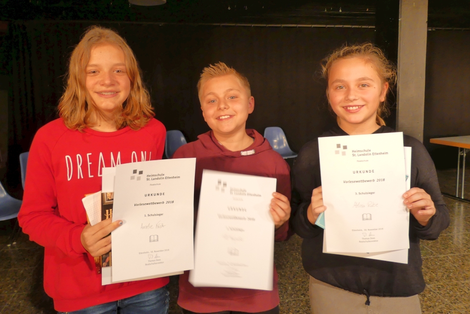 Einen tosenden Applaus gab es schließlich für die drei ersten Sieger: Platz drei belegte Melissa Rube, Platz zwei ging an Till Krupinski und Amelie Kratt vergoss Freudentränen über ihren ersten Platz. Sie reist nun mit ihrem Buch eine Runde weiter ins Kreisfinale. Wir wünschen ihr dafür viel Erfolg und gratulieren allen Siegern und Vorlesern zu den tollen Leistungen!