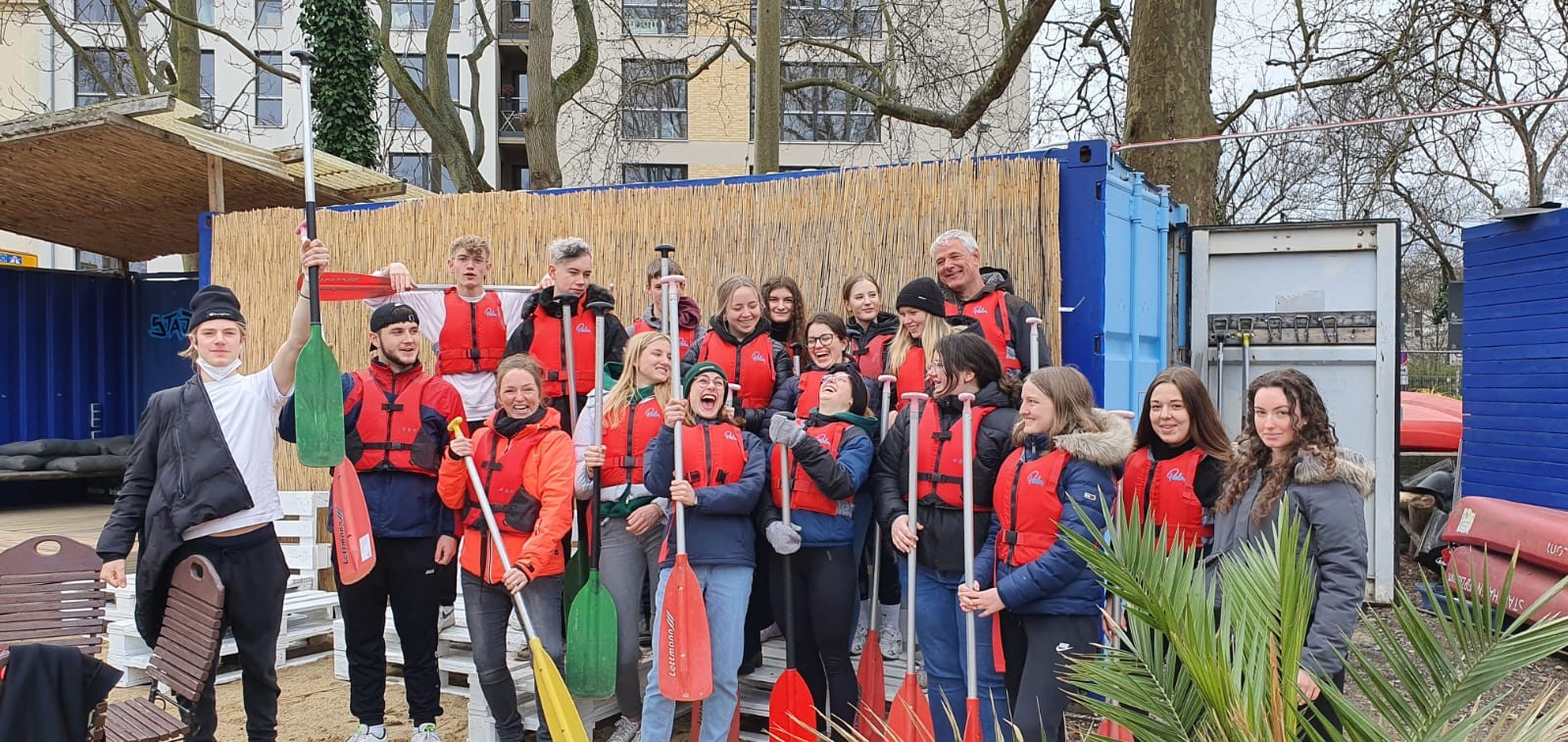 Neben dem Besuch der üblichen Touristen-Hotspots (Brandenburger Tor, Regierungsviertel, Oberbaumbrücke, UNESCO-Welterbe Schloss Sanssouci…) erhielten die Schülerinnen und Schüler auf ihrer Studienreise beispielsweise an der Gedenkstätte Berliner Mauer (Bernauer Straße), oder auch in der Ausstellung „Berlin Global“ (Humboldt-Forum), Einblicke in die Vergangenheit und Gegenwart der Stadt und befassten sich des Weiteren mit deren Zukunftsperspektiven im „Futurium – Haus der Zukünfte“. Die Religionslehrerin ließ keine Möglichkeit aus auch die Besonderheiten der vielen verschiedenen Kirchen zu erläutern und so erkundeten wir unter Anderem die Kaiser-Wilhelm-Gedächtniskirche und sogar die Kapelle im Olympiastadion. Selbstverständlich kam aber auch das Selbststudium des Berliner Einzelhandels nicht zu kurz ;-)
