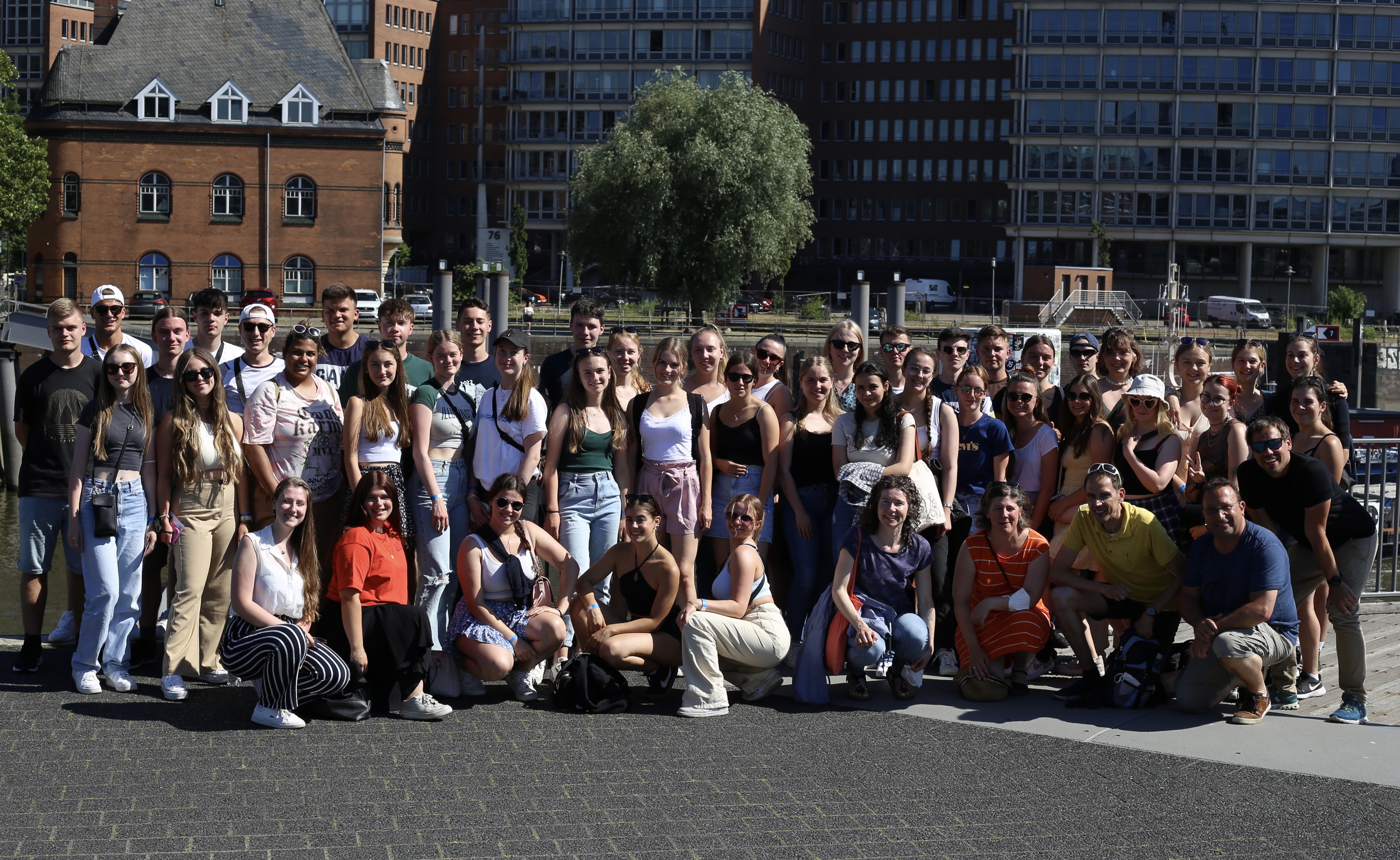 Mehrmals musste die Studienfahrt der 13. Klasse des Beruflichen Gymnasiums pandemiebedingt verschoben werden … nun hat es geklappt. Moin, Hamburg! Gemeinsam mit den beiden Klassen des Sozialwissenschaftlichen Gymnasiums machten wir uns per Zug auf den Weg in die zweitgrößte Stadt Deutschlands. Die Startbedingungen waren denkbar günstig, da Studienfahrten an der Heimschule St. Landolin für gewöhnlich rund um die Osterferien stattfinden, sind wir diesmal mit der Hoffnung auf laue Sommernächte gestartet. Tatsächlich wurden wir nicht enttäuscht – Hamburg die Weltstadt im Norden, sonst bekannt für sein wechselhaftes Wetter, schenkte uns drei volle Tage Sonnenschein satt bei angenehmen 25 bis 30 Grad Celsius … und lauen Sommernächten.