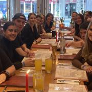 Ein Großteil der Klasse genoss zum Abschluss aus 37 Metern Höhe die grandiose Rundumsicht von der Plaza des teuersten und neuesten Wahrzeichens der Hansestadt: der markanten Elbphilharmonie im Zentrum des Hamburger Hafens. Schließlich ließen sich dort einige, inklusive unserer Begleitlehrerin Frau Freter, noch zu einem Abschlussdrink von unserem Klassenleiter Herrn Kohler einladen.