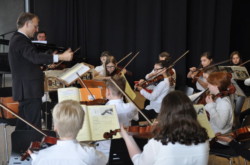 Den Tag der offenen Tür des Gymnasiums am Samstag eröffnete die Streicherklasse der fünften Jahrgangsstufe mit einem kurzen Konzert in der Aula. Unter der Leitung von Werner Wittstock spielten die Schülerinnen und Schüler, die seit Beginn des Schuljahres gemeinsam ihre Instrumente erlernen, erstmals öffentlich und verdienten sich den Applaus aller Gäste. Schulleiter Eberhard Pfister begrüßte das interessierte Publikum, lud zur Neugierde am Angebot der Heimschule und zum offenen Nachfragen ein. Anschließend machten sich die Grundschülerinnen und -schüler mit ihren Eltern auf Erkundungstour durch die Heimschule St. Landolin.