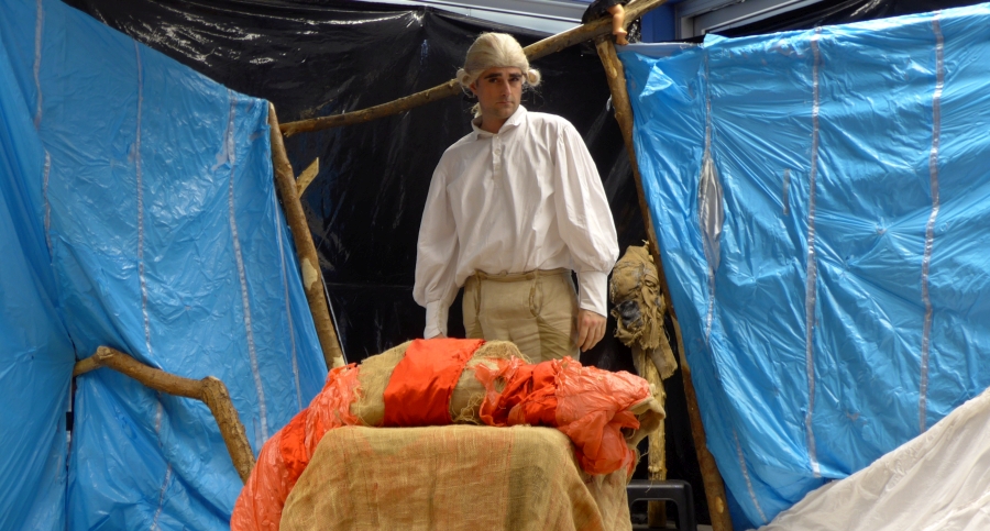 Der Schauspieler Georgios Tzitzikos schlüpft in dem Stück Büchner. die welt. ein riss. in die Rollen aus den meisten Werken des manchmal schwer zugänglichen Literaten. König Peter aus Leonce und Lena, Woyzeck, Danton, Robespierre, Lenz und gar Büchner selbst haucht er Leben ein. Allesamt dargestellt mit unglaublicher Stimmvielfalt, unterschiedlichen Bewegungsmustern und ansteckendem Enthusiasmus.