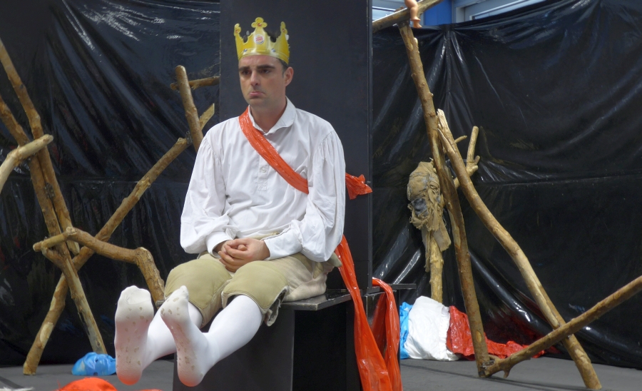 Das Klassenzimmer ist ungewöhnlich voll, dicht gedrängt sitzen die Schülerinnen und Schüler einiger Abiturkurse des Faches Deutsch um die quadratische Spielfläche. Auch in diesem Jahr zieht die Aufführung der Tourneebühne THEATERmobileSPIELE des Regisseurs und Theaterpädagogen Thorsten Kreilos die Zuschauer in ihren Bann.