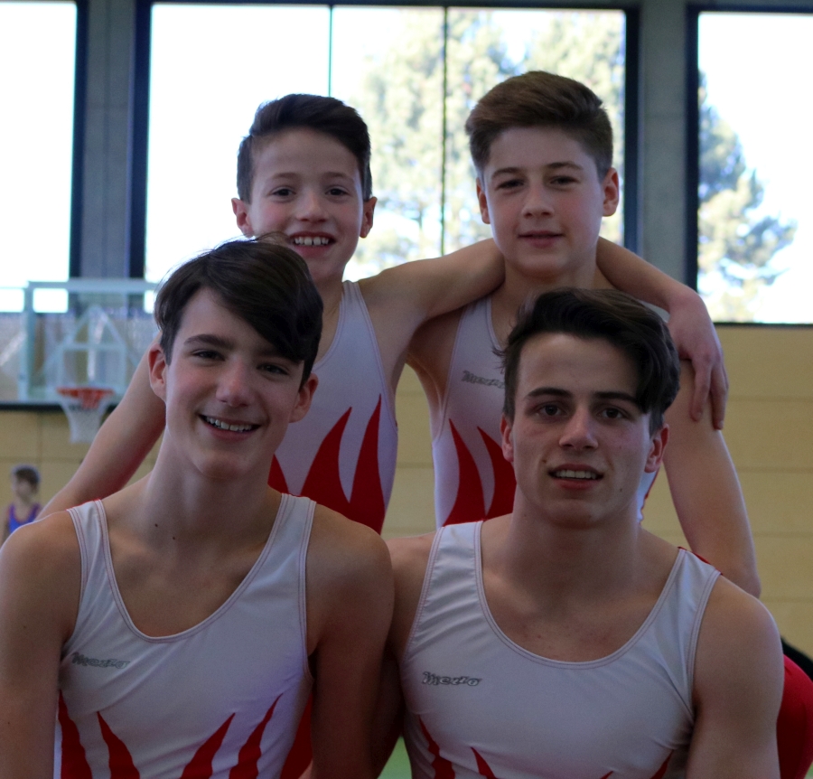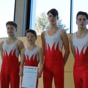 Auch die Jungen-Mannschaft musste im RP-Finale einen verletzungsbedingten Ausfall verkraften: Obwohl Rick Brillaut nicht turnen konnte,lieferten Mika Stelter, Paul Herrmann David Schweizer und Ruben Hanke einen hervorragenden Wettkampf und gewannen souverän mit 12 Punkten Vorsprung vor der zweitplatzierten Mannschaft. Ob diese Leistung für eine Fahrkarte nach Berlin ausreicht, wird sich dann beim Landesentscheid zeigen. Auf jeden Fall schon einmal bis zu dieser Ebene eine tolle Leistung, über die sich auch das Betreuerteam David Lang, Tibor Mellert und Birgit Walz sehr freuen.