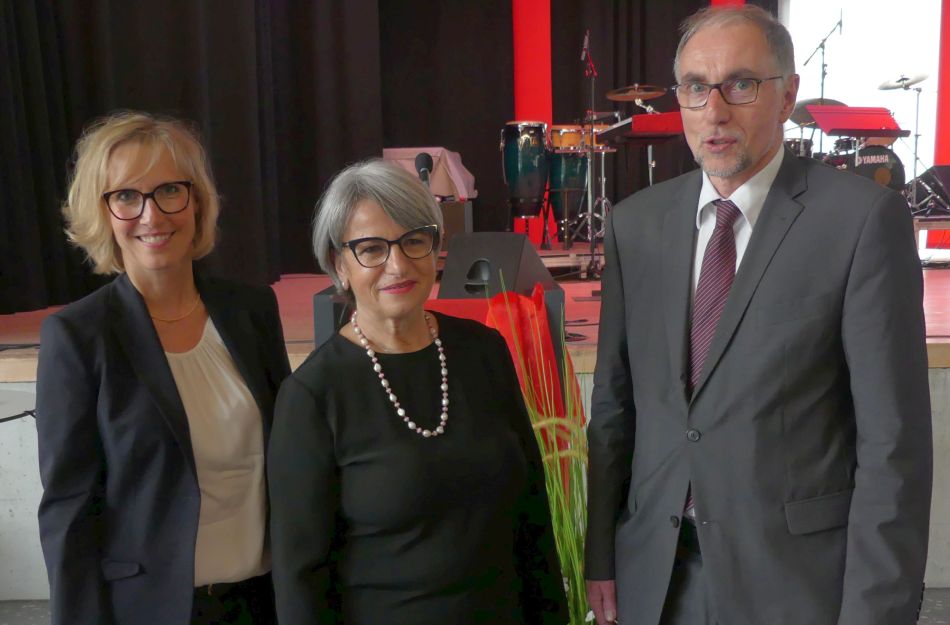 Die neue Realschulrektorin Nicola Heckner, die scheidende Realschulrektorin Ulrike Hugel und Schulstiftungsdirektor Dietfried Scherer