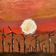 Bei einer kleinen Vernissage hatten sich die ukrainischen Familien, die auf dem Heimschulcampus leben, und interessierte Schülerinnen und Schüler eingefunden. In Anwesenheit von Dascha Bezkosta beantwortete ihre Mutter Fragen zu den Bildern. Als Übersetzerin gab Kunstlehrerin Dana Wurth wichtige Eindrücke wieder: So seien in den Bilder natürlich Kriegserlebnisse verarbeitet, aber auch der neuen Gemeinschaft der drei Familien, die nun in Ettenheim zusammenleben, sei ein Bild gewidmet. Am Schwarzwald seien die Windräder für die junge Künstlerin ein neuer Eindruck, weshalb auch sie ihren Weg in eines der Bilder gefunden haben.