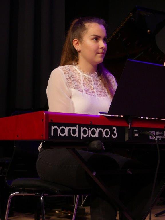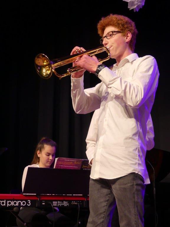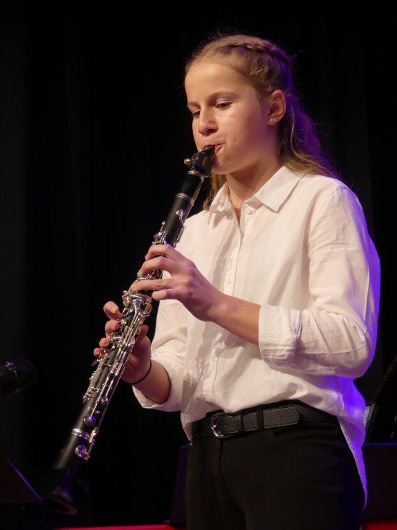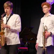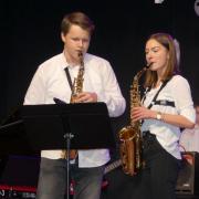 Zum Abschluss des Konzertabends spielten die erfahrenen und bestens geschulten Musiker der Abschlussklassen R 10. Dem Musiklehrer Tobias Schulz, selbst Schlagzeuger in mehreren Ensembles, liegen Stücke mit amerikanischen Rhythmen, bei denen die Gäste sogleich auch mitschnipsten oder mitklatschten. Im „River City Blues“ ließ sich das, einem Ehestreit ähnlichen Duett der Saxophonsolisten Max Trotter und Greta Leser heraushören. Das letzte Musikstück des sehr gelungenen Konzertabends hieß „Go Charlie go“ und wurde von dem „Kuhglocken“-Schlagwerk von Musiklehrer Schulz geprägt.