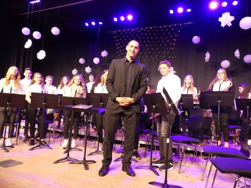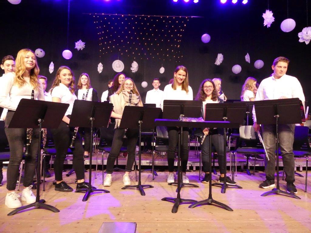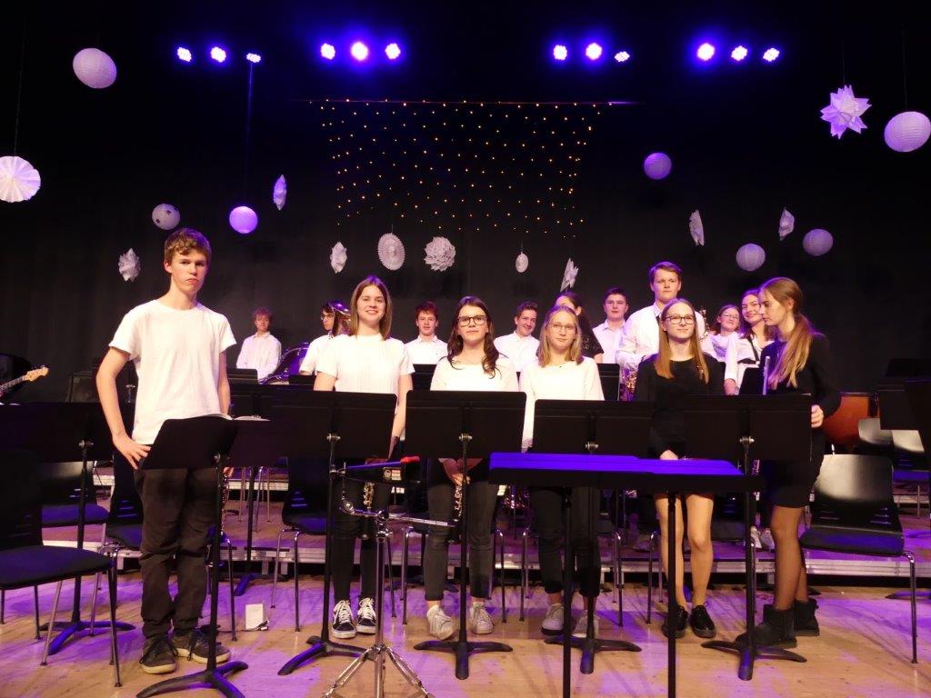 Vier Bläserklassen bereiteten mit ihren fünf Dirigentinnen und Dirigenten den Zuhörern in der weihnachtlich geschmückten Aula der Heimschule mit dem Winterkonzert eine musikalische vorweihnachtliche Bescherung der besonderen Art.