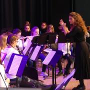 Mit Filmmusik nahmen Musiklehrer Markus Albu und seine Schüler aus den Klassen R 9 das Publikum mit ins Kino. Für die Titelmelodie von James Bond wurden die Solisten Fabian Schillinger (Saxophon), Andreas Bläsi (Trompete) und Vanessa Müller (Keyboard) mit viel Beifall bedacht. Mit derselben Klassenstufe spielte die Gastdirigentin drei tschechische Volkslieder. Der Schlagzeuger mit dem Triangel hatte viel zu tun, um mit seinem Instrument die Stimmung von Volksfest und die Marschmusik zu unterstützen.