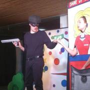 The author of the play, Peter Griffith, wrote the play because he wanted a girl with superpower. We like that. We also think that the play was amazing! The costumes were great and very, very funny! After the show we had the possibility to ask questions and take photos with the actors. That was great! By the way, you can follow them on Instagram at #showsandschnitzel.