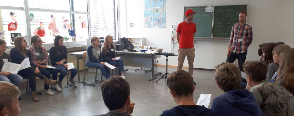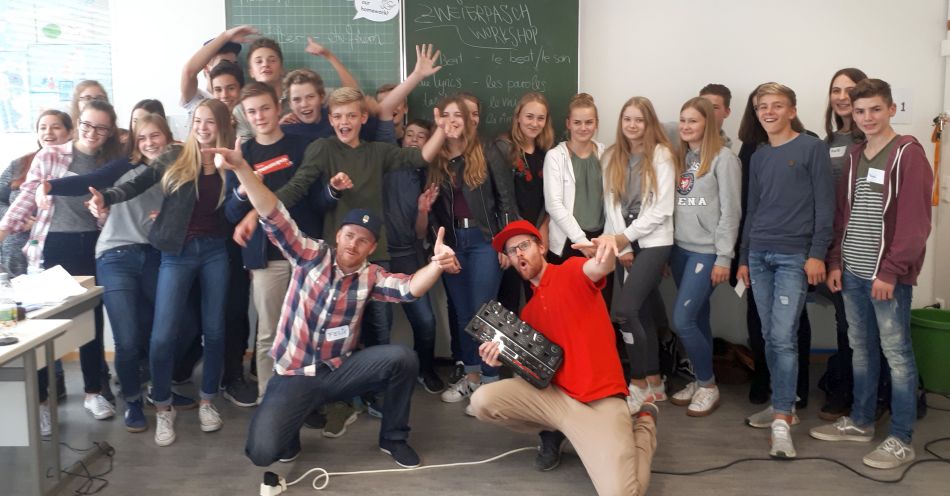 Bei den Workshops ging es darum, Rap-Rhythmen zu einem deutsch-französischen Songtext einzuüben und schließlich in einem Rap-Wettstreit möglichst überzeugend zu performen. Der Song „typique, typique – typisch, typisch“ setzt sich augenzwinkernd mit Klischees vom „Deutsch-“ bzw. „Französischsein“ auseinander. Die Workshops stießen auf großen Anklang mit beat und paroles im gereimten Gesang. Der stellvertretende Schulleiter des Gymnasiums und Französischlehrer Wolfgang Mutter erklärt: „Zum einen passen die Inhalte wunderbar in die Lehrpläne, die neben dem Bekanntmachen der Kultur des Nachbarn auch den Anstoß von Freundschaften über Austauschprogramme beinhalten. Zudem bedeutet der Einstieg in die französische Sprache und deren Vertiefung über Hip-Hop für die Schülerinnen und Schüler natürlich zusätzlich Motivation. Damit sind sie pädagogisch besonders wertvoll.“