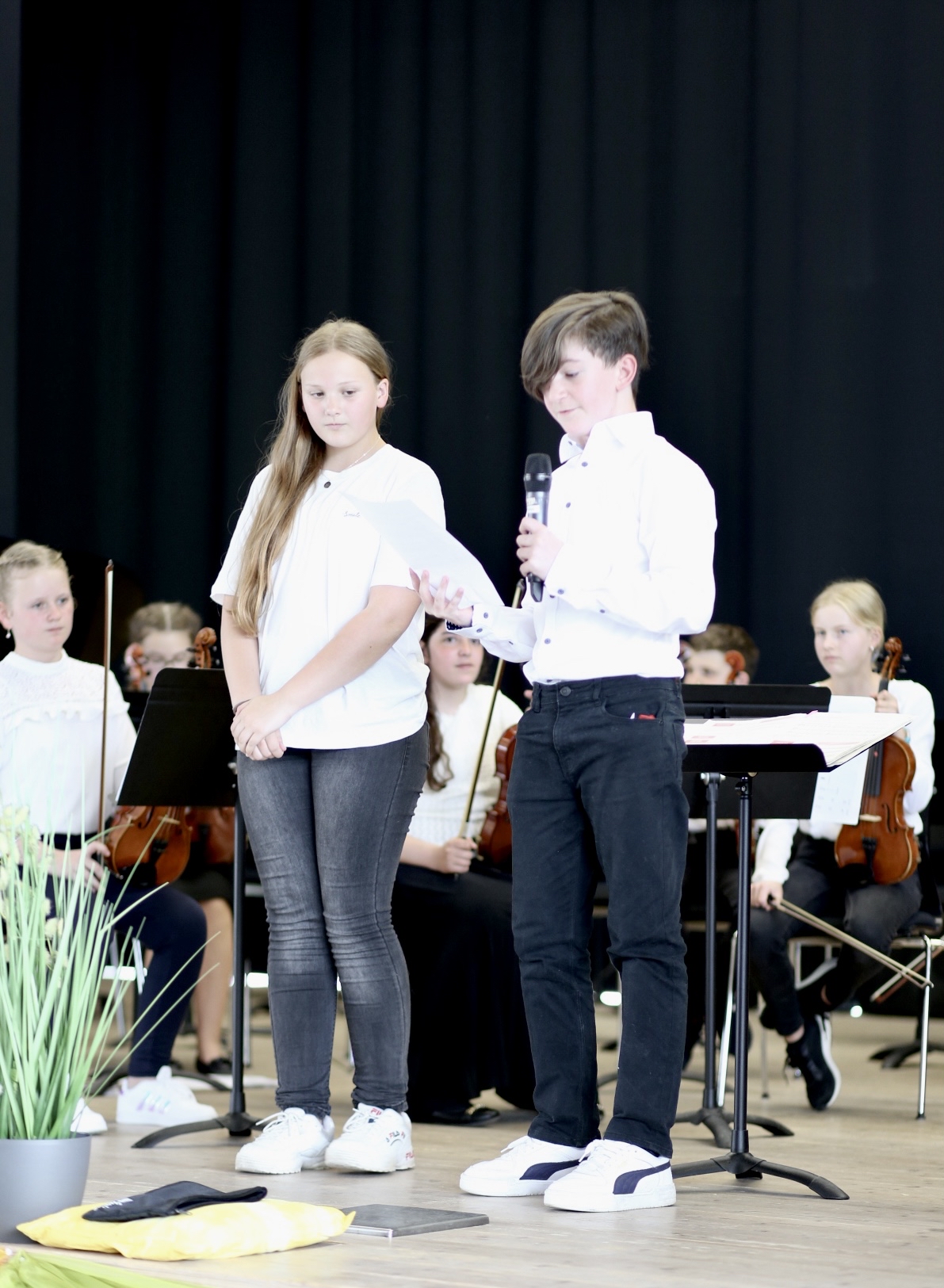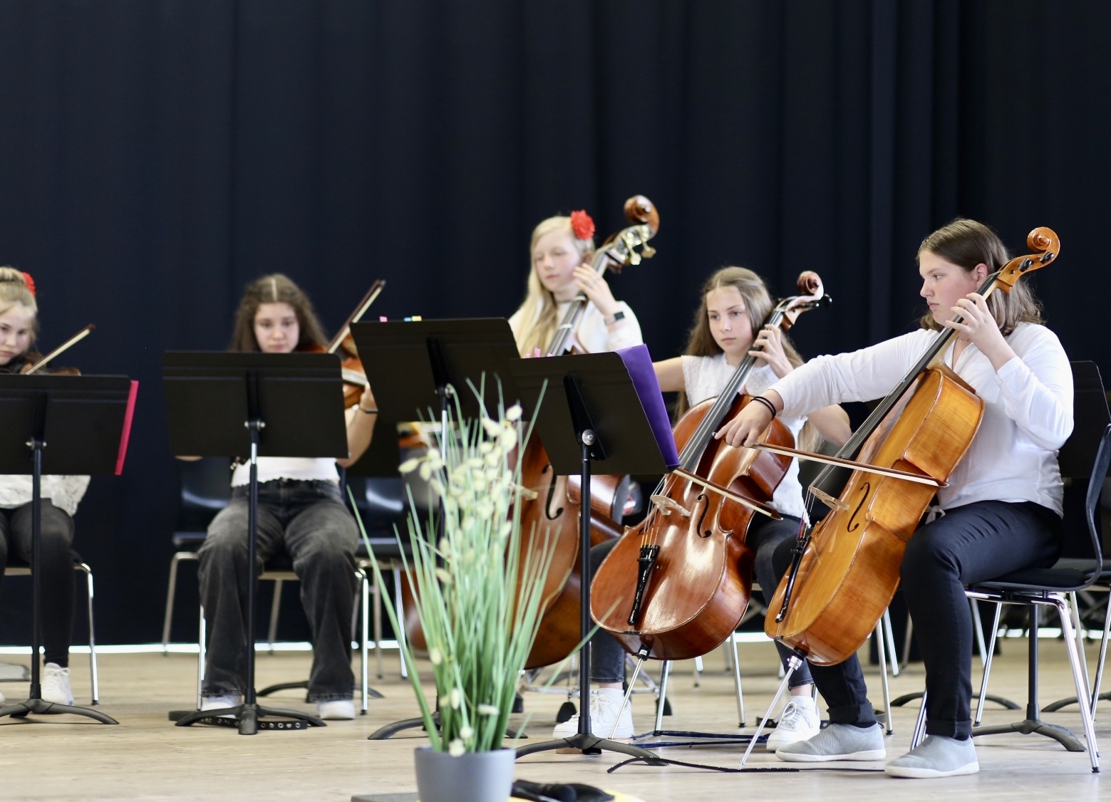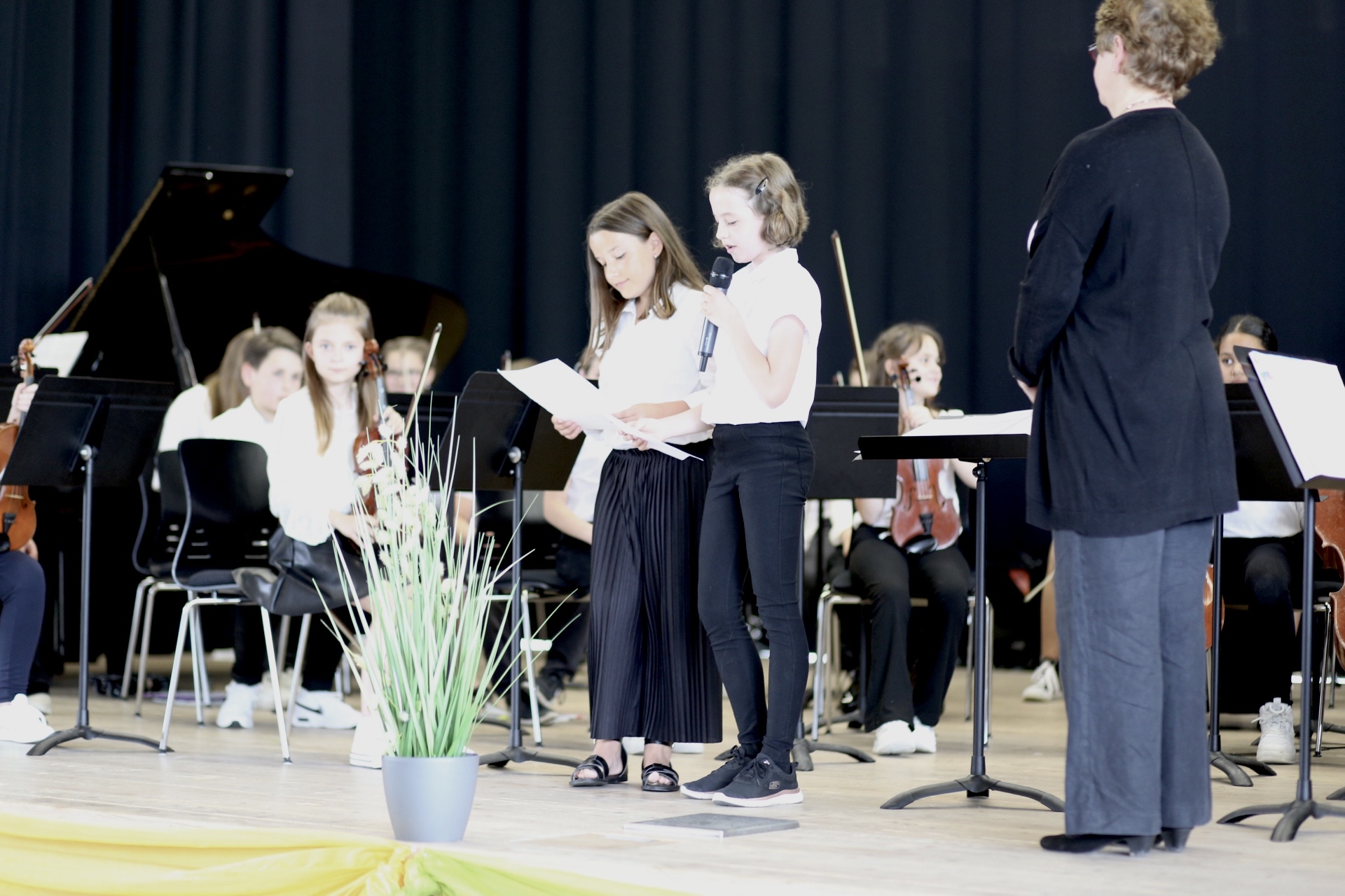Für beide Klassenstufen war dies der erste Auftritt auf der Bühne, für die Fünftklässlerinnen und Fünftklässler nach nur rund einem Halbjahr Unterricht am neuen Instrument. Die Zuhörerinnen und Zuhörer wertschätzten dies mit dankendem Applaus.