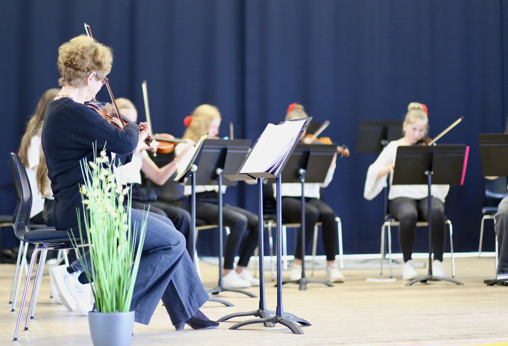 Die Musiklehrerinnen Lara Grobshäuser und Susanne Albrecht-Krüger gaben in ihrer Begrüßung der Freude Ausdruck, dass diese Veranstaltung und das gemeinsame Musizieren nach langer Pause wieder möglich sei.