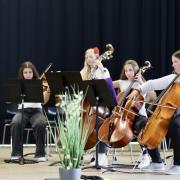 Mit Volksweisen aus Schottland und Frankreich setzte dann die Streicherklasse 6 das Programm fort und spielte schließlich ein Konzertstück, das nach eigener Aussage das Lieblingsstück der Klasse ist. Beim temperamentvollen Can-Can von Jacques Offenbach konnten sie das Publikum gewinnen und zum Mitklatschen animieren.